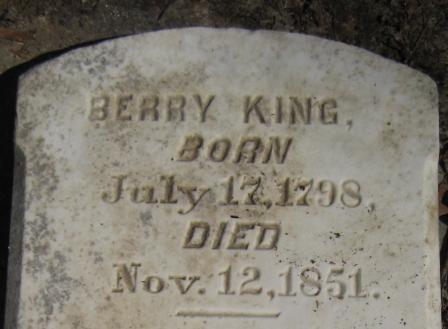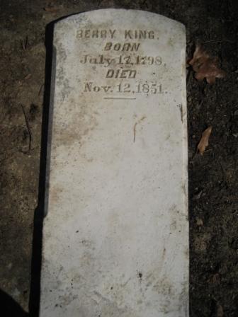 Burial Notes: Headstone: "Berry King BORN July 17, 1798 DIED Nov. 12, 1851"