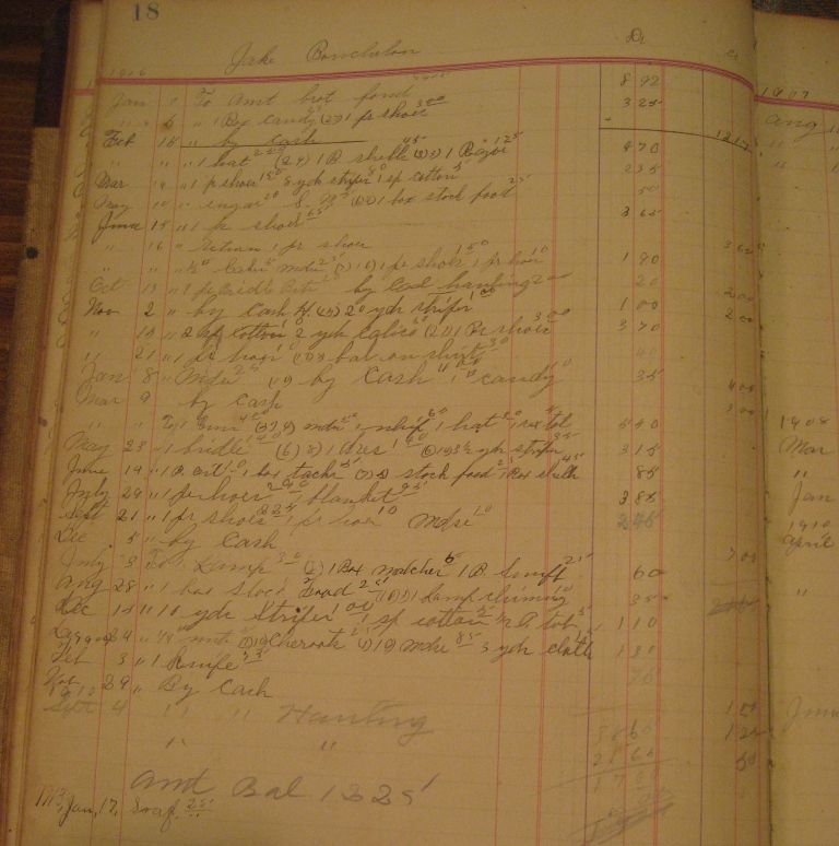 Simpson King. The transcribed ledger was dated 1906-1911 and included store