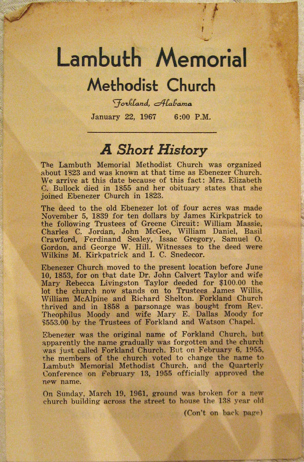 4. Lambuth Memorial Methodist Church, A Short History (Brochure),