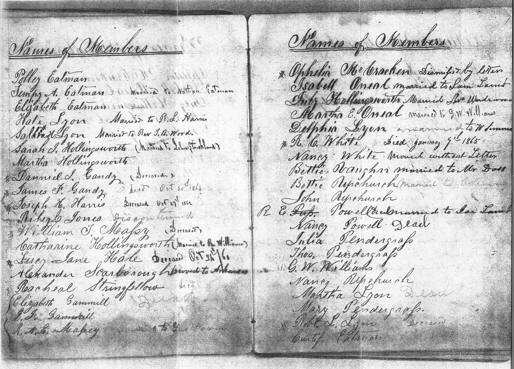 Charter members were Elizabeth Brooks, David S. Brooks, Thomas J.